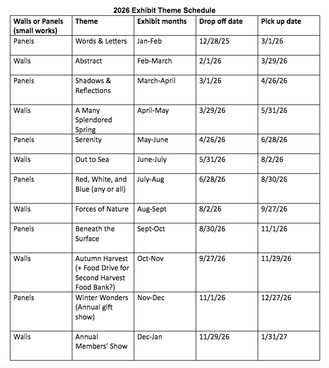 Submit your artwork up to 12″ in any direction, including frame. You may enter up to 2 pieces and will receive 60% of sales and SRAC 40%.
